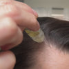 Plaats de applicator zachtjes op de hoofdhuid en stempel lichtjes op de dunner wordende zones. Werk altijd van voor naar achter, met lichte overlap.